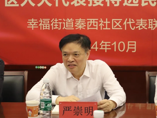 10月16日上午,崇川区人大常委会主任、党组书记严崇明以区人大代表身份,来到幸福街道秦西社区代表联络站开展人大代表接待日活动,与选民代表面对面交流,零距离听呼声、解难题、办实事。