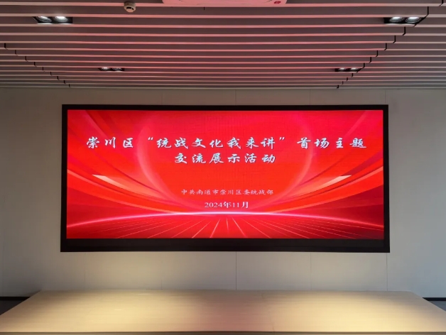 11月18日下午,崇川区委统战部组织开展“统战文化我来讲”首场主题交流展示活动。区委统战部常务副部长严晓蓓,区委统战部副部长、区侨办主任茅振华,区委统战部副部长、台办主任邱炜,区委统战部副部长、区民宗局局长朱天宇,区委统战部副部长、区工商联党组书记张伟等出席活动。