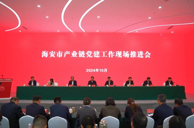 10月22日,我市召开产业链党建工作现场推进会。省委组织部组织三处二级调研员张继东,南通市委组织部副部长陈鹏军,江苏工程职业技术学院党委书记秦志林,南通市委组织部组织二处处长、四级调研员刘建军,江苏工程职业技术学院党委委员、组织部部长、统战部部长仲岑然,海安市委常委、开发区党工委副书记张勇华,海安市委常委、组织部部长、统战部部长钱旭东,海安市政府党组成员、副市长夏卫军等出席活动。南通市委组织部副部长陈鹏军对进一步推进产业链党建工作讲话提要求。