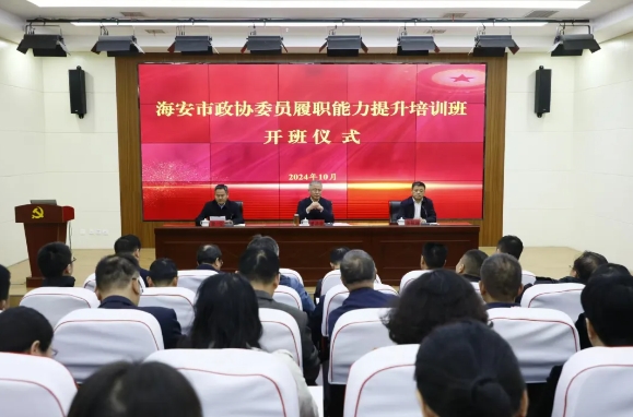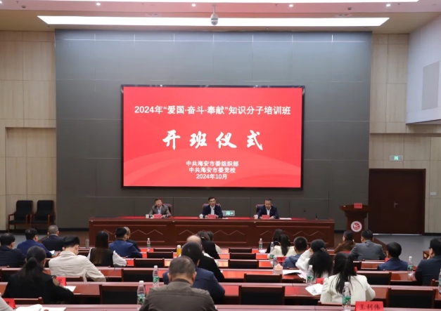 为学习贯彻党的二十届三中全会精神,加强团结引领服务知识分子,10月22日至10月24日,我市举办2024年“爱国·奋斗·奉献”知识分子专题培训班,培训班综合运用专题讲座、现场参观、情景教学、交流研讨等多种方式,带领学员强化理论武装、感悟时代伟力,坚定发展信心、提升实践本领,团结号召全市广大知识分子爱国奋斗、奉献担当,积极投身中国式现代化海安新实践。海安市委常委、组织部部长、统战部部长钱旭东出席开班仪式。